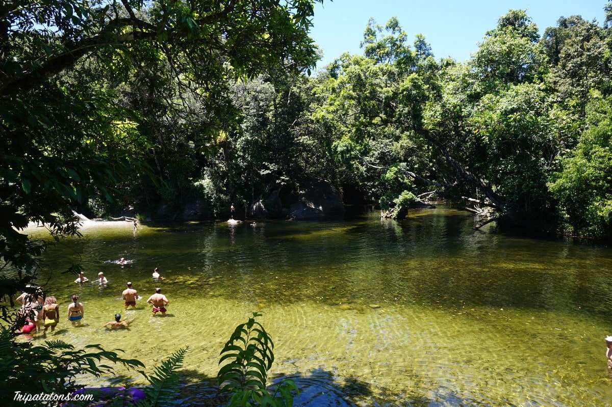 Le matin, je m’arrête rapidement à Babinda Boulders. Il s’agit encore une fois d’une rivière où il est possible de se baigner. Elle passe entre de gros rochers lissés avec le temps.