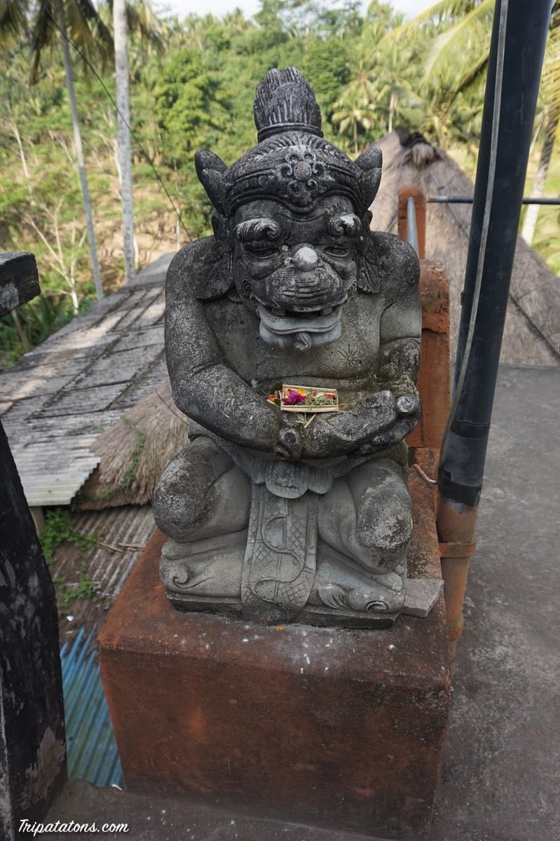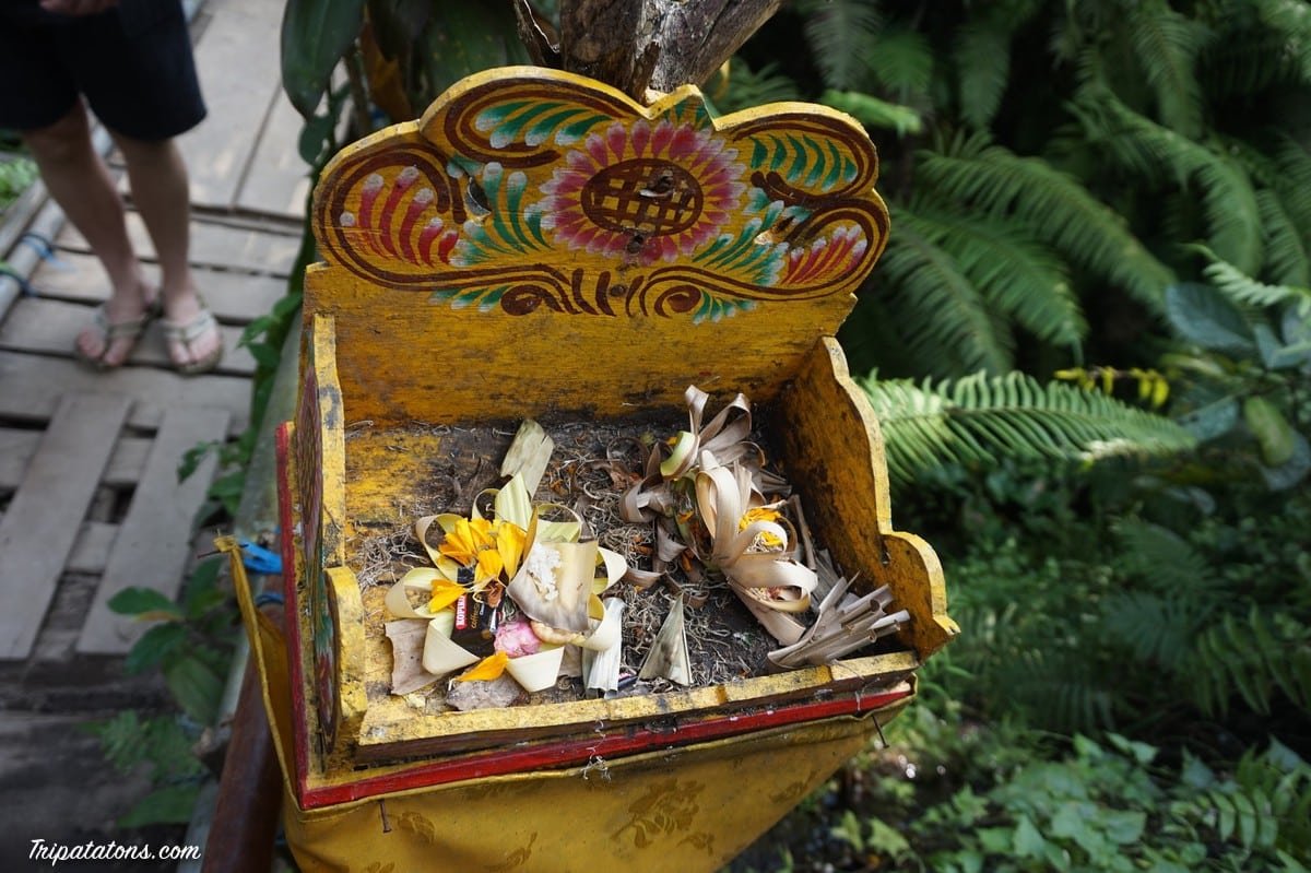 Dernier lever sous l’humide chaleur balinaise. Même si parfois ça n’a pas été simple, nous retenons beaucoup de positif de ce voyage et un vrai dépaysement. A partir du moment où il n’y a pas d’argent en jeu dans une discussion (ou que votre temps de négociation est terminé), les Balinais sont des gens vraiment souriants, simples et chaleureux. Ils sont attachés à leurs coutumes. C’est magique de voir leur quotidien rythmé par la distribution d’offrandes avec une sorte de prière susurrée et des gestes gracieux, leurs vêtements traditionnels colorés portés par tous à tout âge, leur langage plein de soleil…