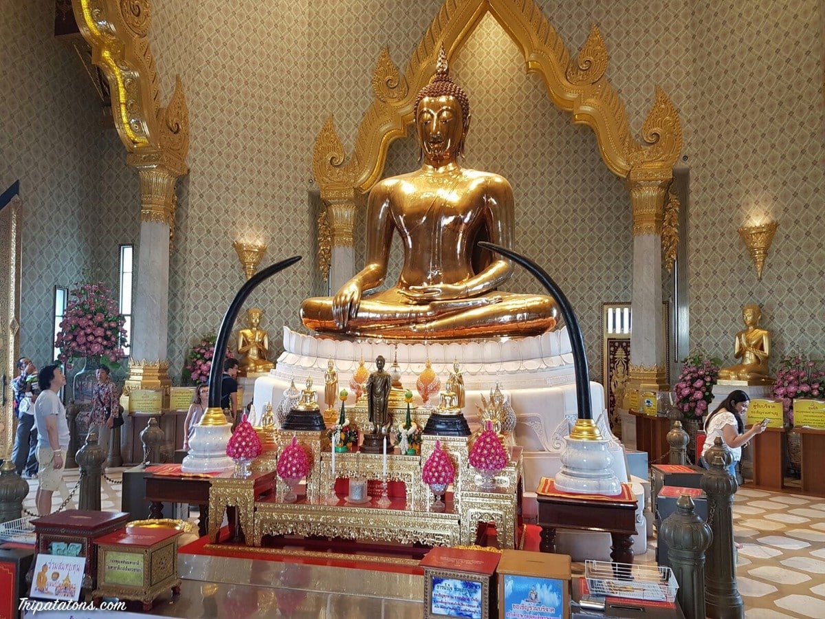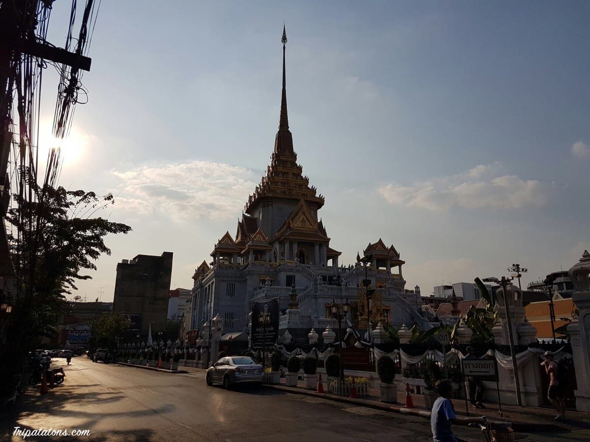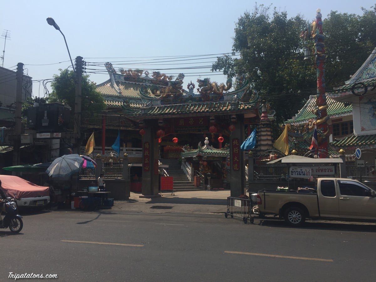 Nous repartons en chemin de la gare. Nous découvrons un temple Bouddha que nous décidons de visiter pour 40 baths par personne. Au sommet nous trouvons un Bouddha en or gigantesque. Le point de vue permet de voir un bout de la ville.