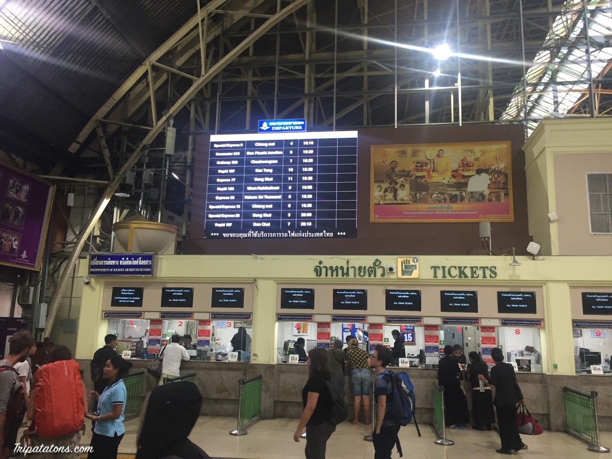Direction la gare. On réserve un train pour ce soir. 1642 bath pour 14h de trajet. On passera la nuit dedans.