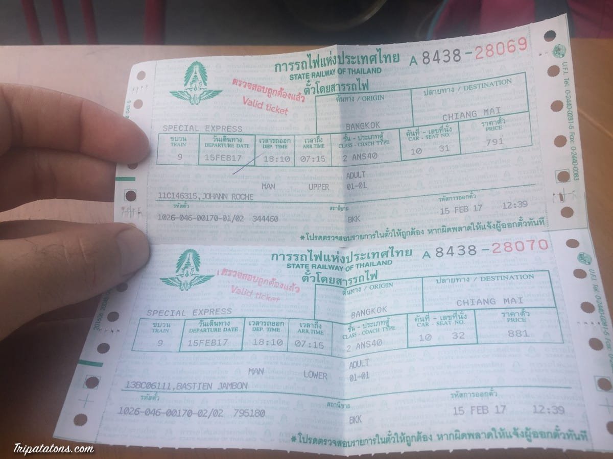 L’objectif du jour est de trouver un train pour aller à Chiang Mai tout au nord de la Thailande. On décide d’appeler Hubert comme on l’appelle (Uber). Le premier chauffeur ne nous trouvera pas. Le deuxième non plus. Du coup on passe le téléphone à une troisième personne qui nous aidera finalement à trouver Hubert. Embarquement..