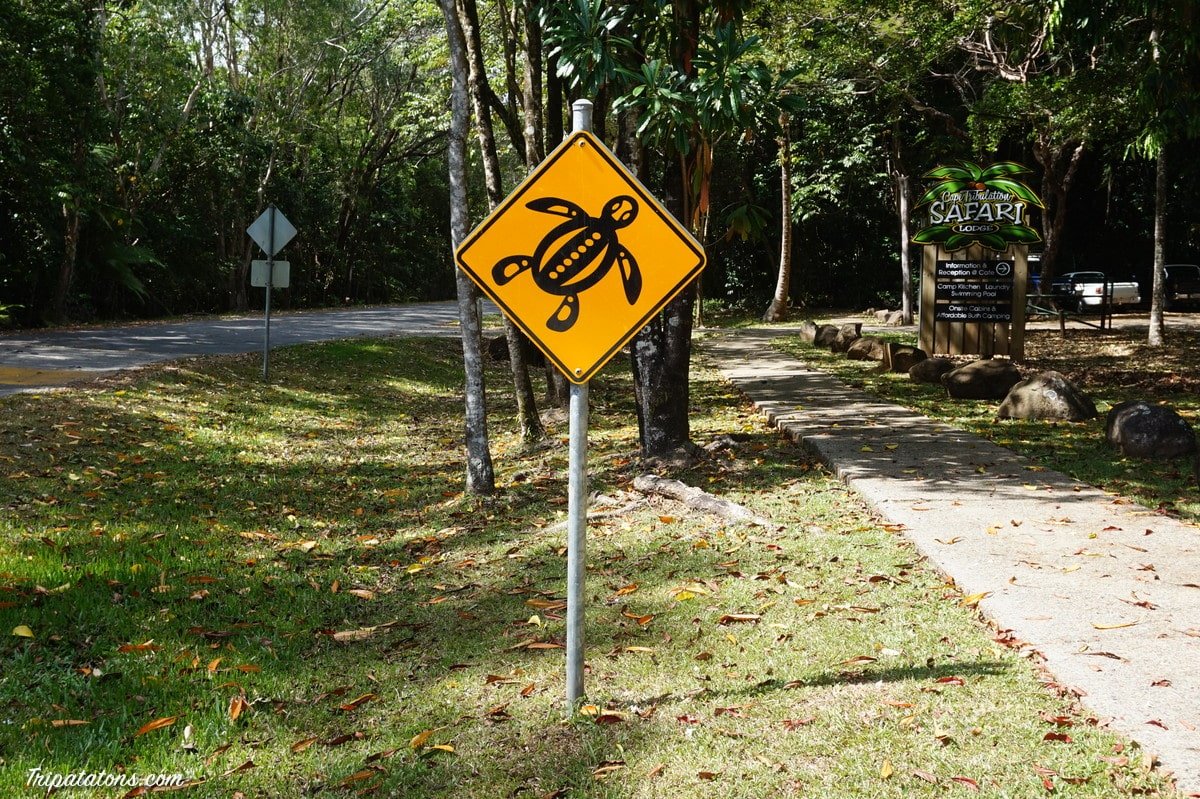 Le lendemain, direction Cape Tribulation, l’ultime spot au nord. Il y a 150 km entre Cairns et Cape. Cape se trouve dans une rainforest, une forêt tropicale, en bord de mer avec quelques mangroves : la Daintree Forest. Ici, la jungle se jette dans l’océan. Le Daintree National Park englobe 900 000 hectares inscrits par l’Unesco au patrimoine de l’humanité.