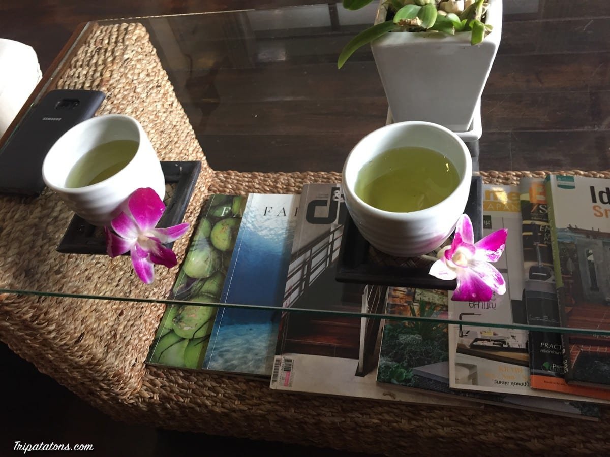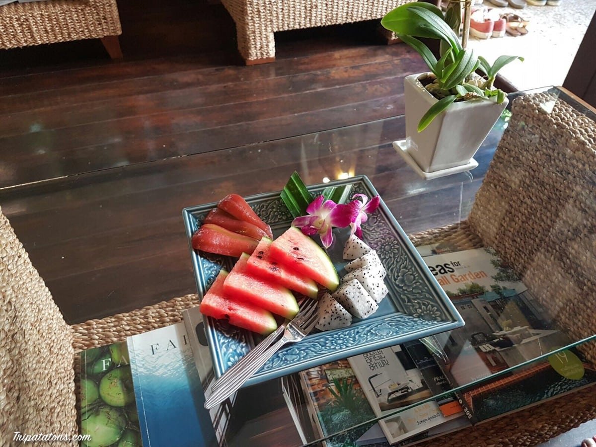 Nous réserverons notre massage Thaï pour 1900 baht par personne. Nous patientons dans le magnifique patio.