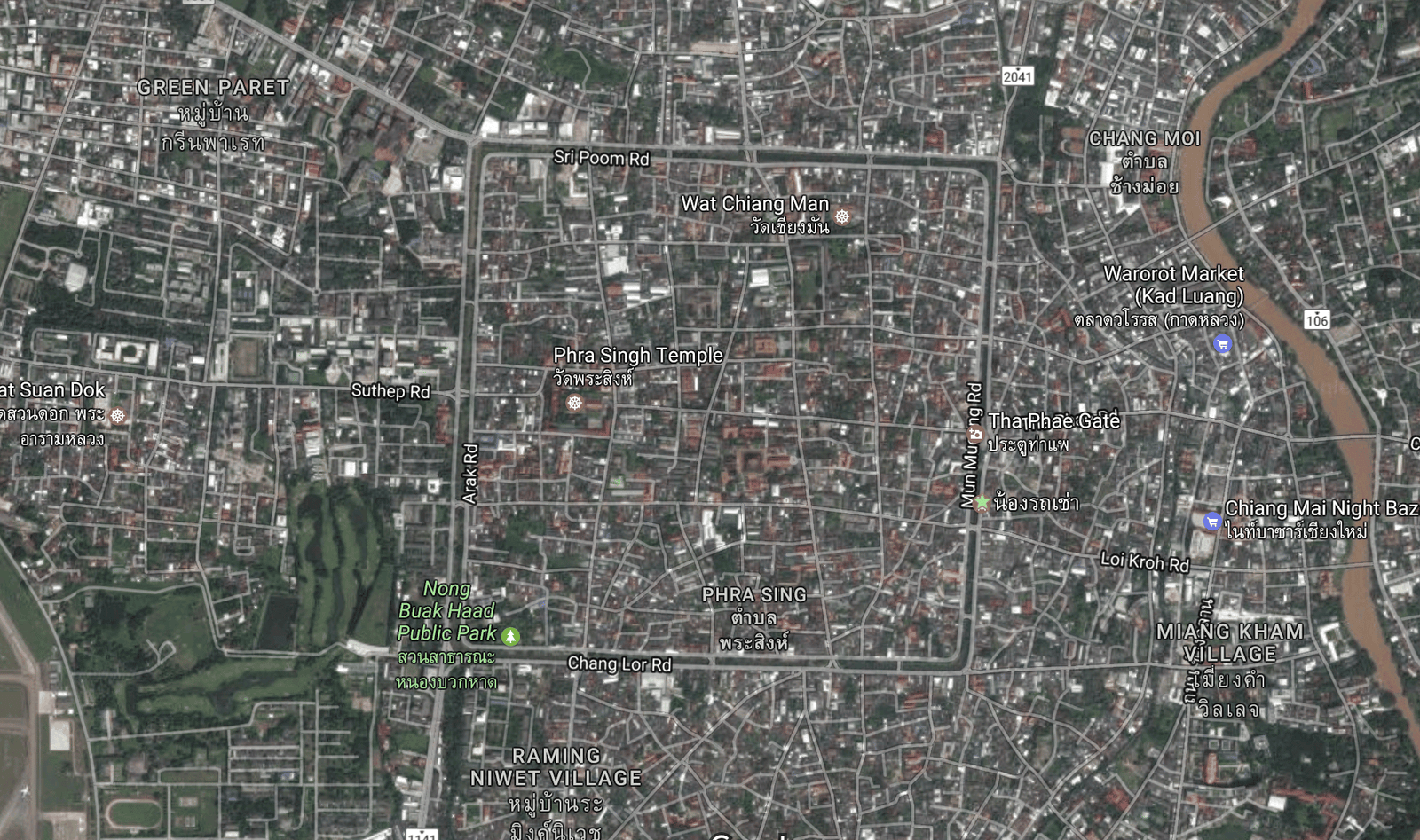 19h nous sortons du massage et nous devons trouver 2 scooters pour notre programme des prochains jours. Nous prenons un tuk tuk afin de trouver une agence de location plus rapidement. Nous nous arrêtons dans une première agence mais après avoir commencé à signer les papiers nous décidons de partir car il y a quelque chose qui ne nous plaît pas (mauvais feeling avec le gars). 100m plus loin nous trouverons notre bonheur pour 1200 Baths (2 scooters 125 pour 2 jours) et 6000 Baths de caution.