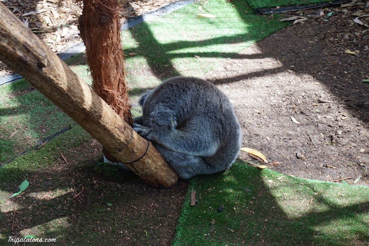 C’est ici que nous visitons un hôpital pour koalas. Ils nous font bien de la peine ces pauvres petits… Ils sont soignés ici pour accidents avec des voitures, morsures de chiens, infections aux yeux etc…