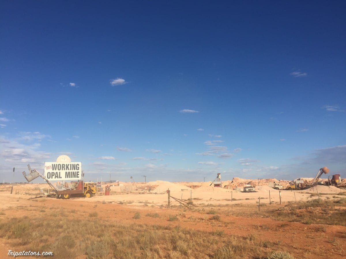 Cette ville est connue pour ses mines d’opale et ses maisons troglodytes. 30 kms avant d’arriver je commence à voir des mines un peu partout et des tas de terre blanc qui s’étalent sur des kilomètres.