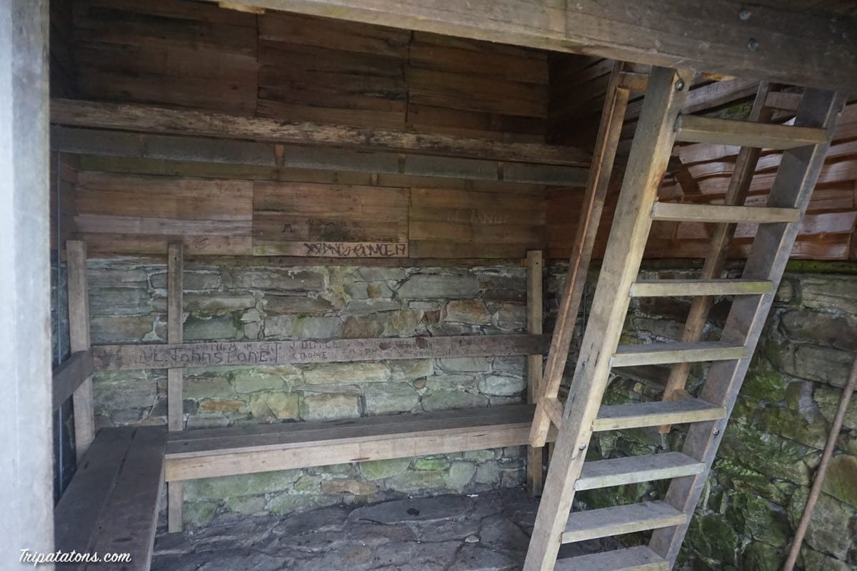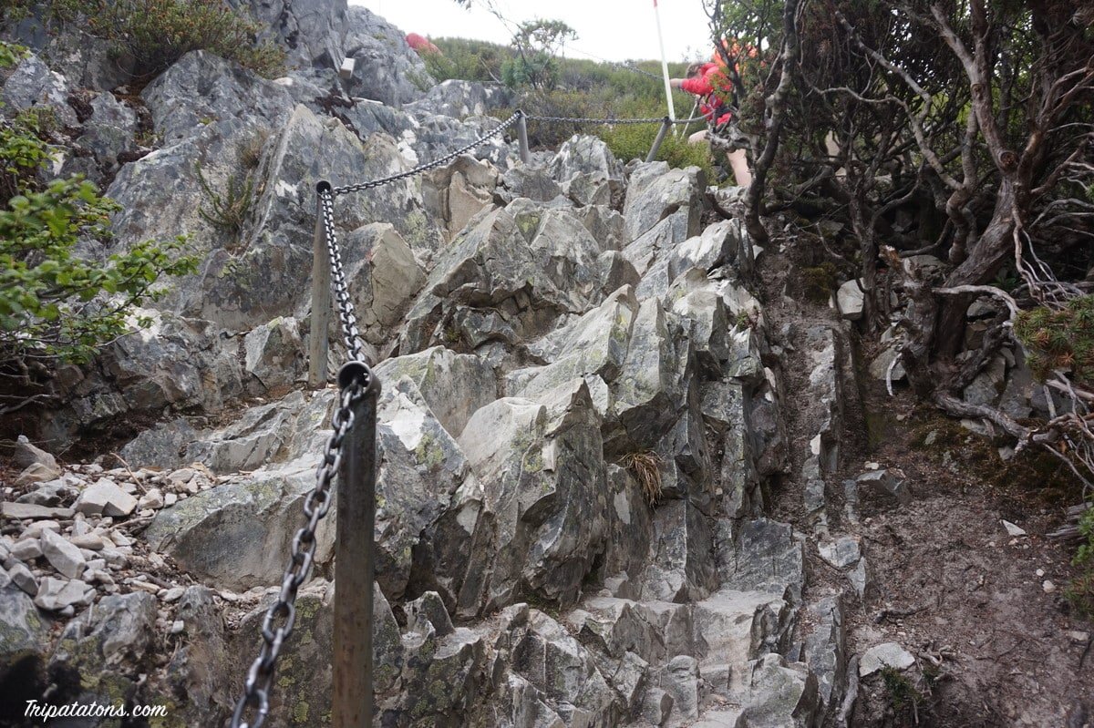 Le but est donc de rejoindre Marions Lookout. Après une bonne grimpette, parfois à l’aide de chaînes, puis avoir longé Crater Lake, nous voici au sommet. Avec la grisaille, ce n’est pas gégé mais nous nous en contenterons.