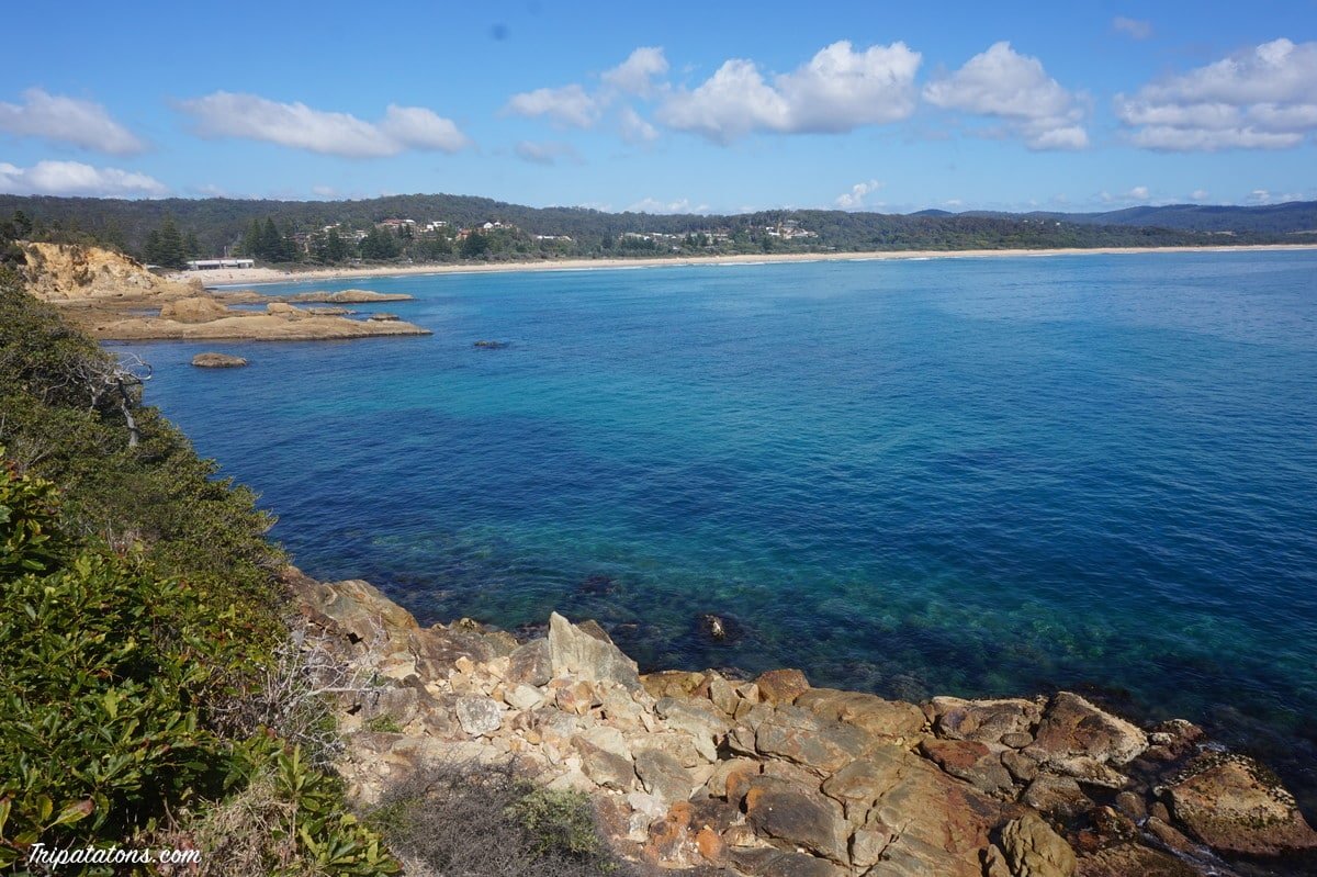 Hyams Beach vers Jervis Bay. Nous ne verrons pas les fameuses eaux cristallines à cause de ce temps pourri qui nous colle aux basques.