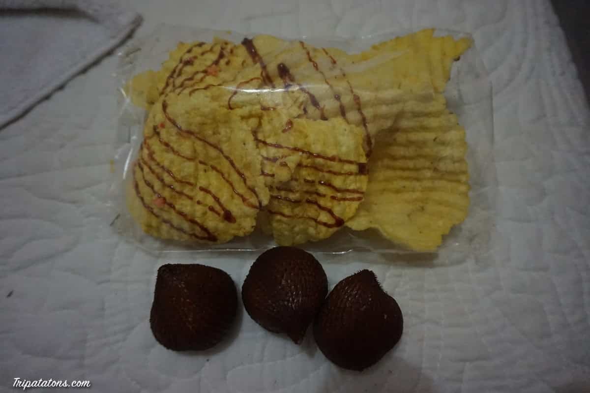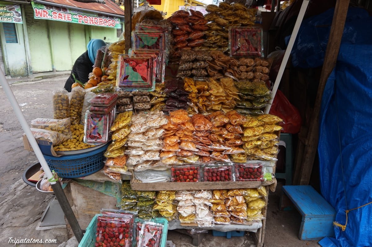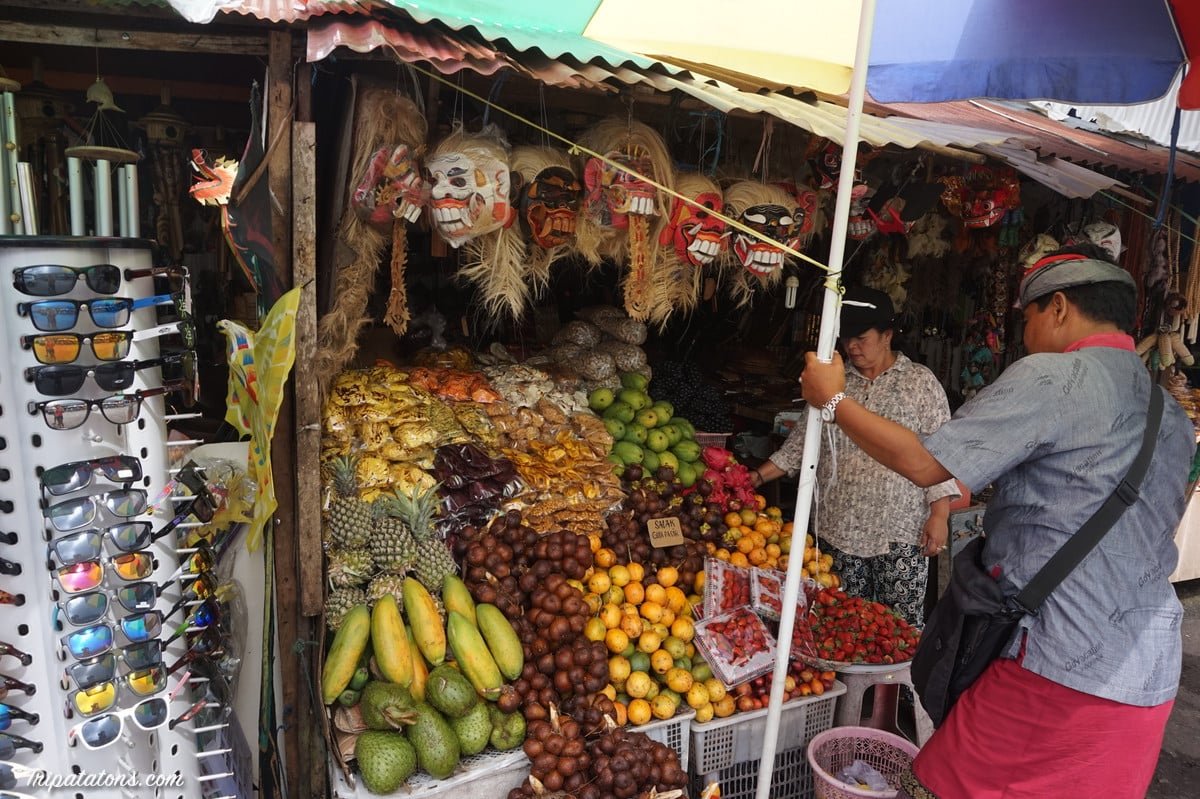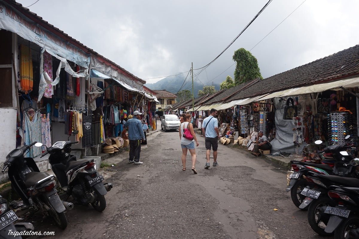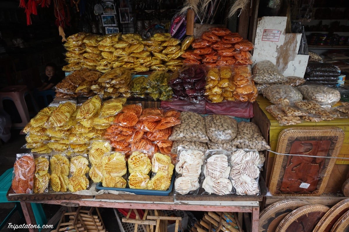 Nous faisons une halte au Bedugul Market, le marché quotidien installé dans le village. Sarongs, bijoux, masques, nourriture… vous y trouvez un peu de tout. Nous en profitons pour acheter des fruits locaux (salak) et des chips de tapioca. Très bon !