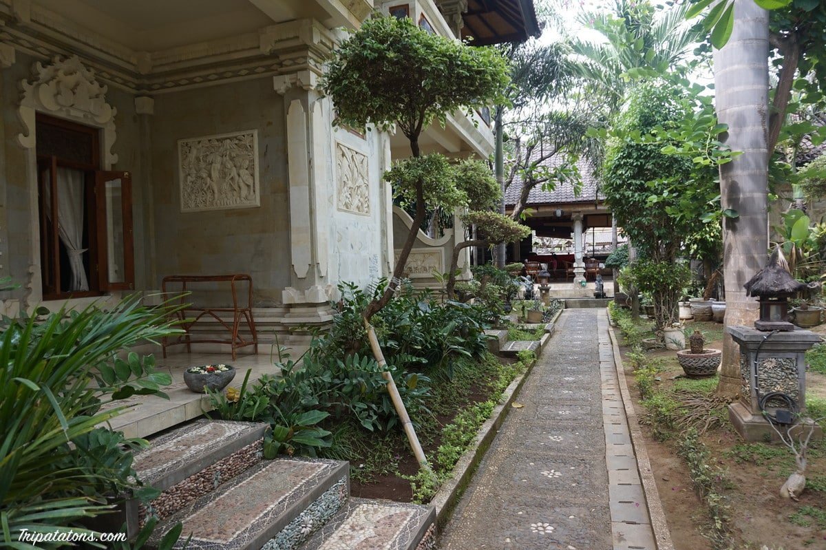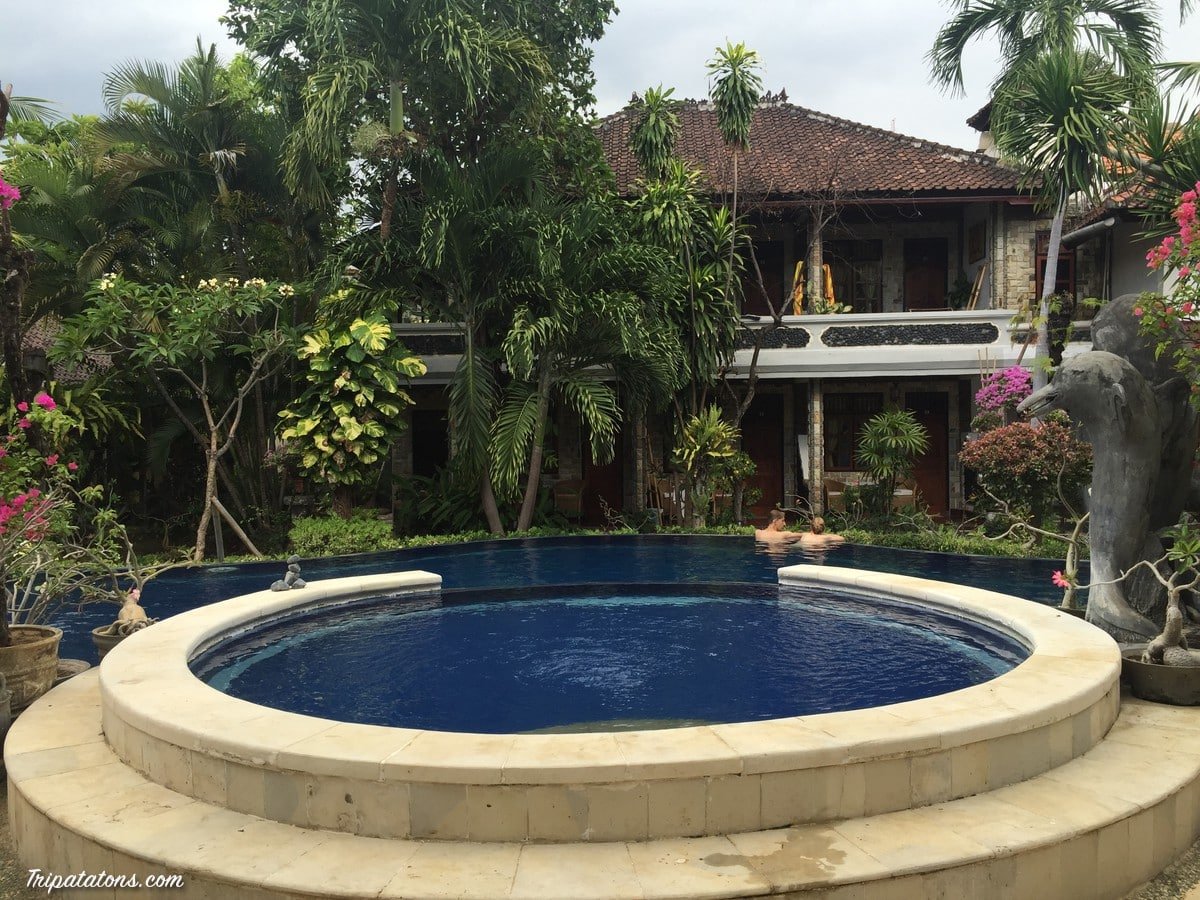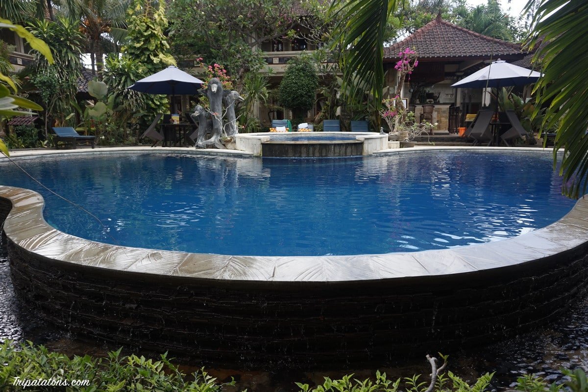 Arrivés à Lovina, nous découvrons notre splendide hôtel Le Suma. Belles chambre et salle de bains, piscine, vrai style balinais avec beaucoup de végétation et statues… Nous avons été surclassés car la chambre que nous devions avoir n’était plus dispo, mais nous n’avons pas droit à la clim…