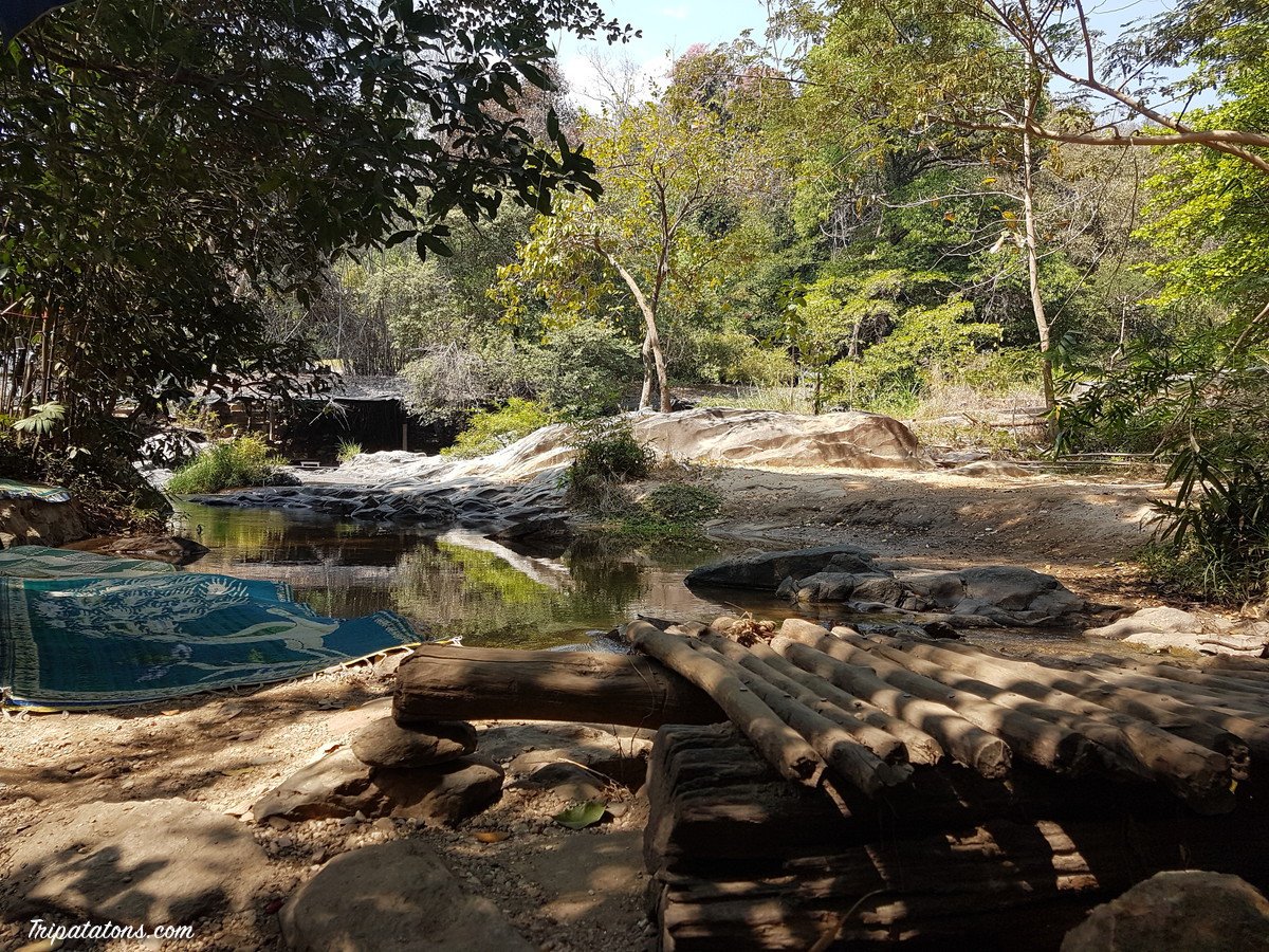 Nous chevauchons nos fidèles monture en direction de Chom Tong. Nous avons réservé un petit bungalow pour la nuit suivante et nous voulons juste poser nos sacs. La vue à l’air super depuis cette petite maisonnette. On s’imagine déjà pour l’apéritif du soir.
