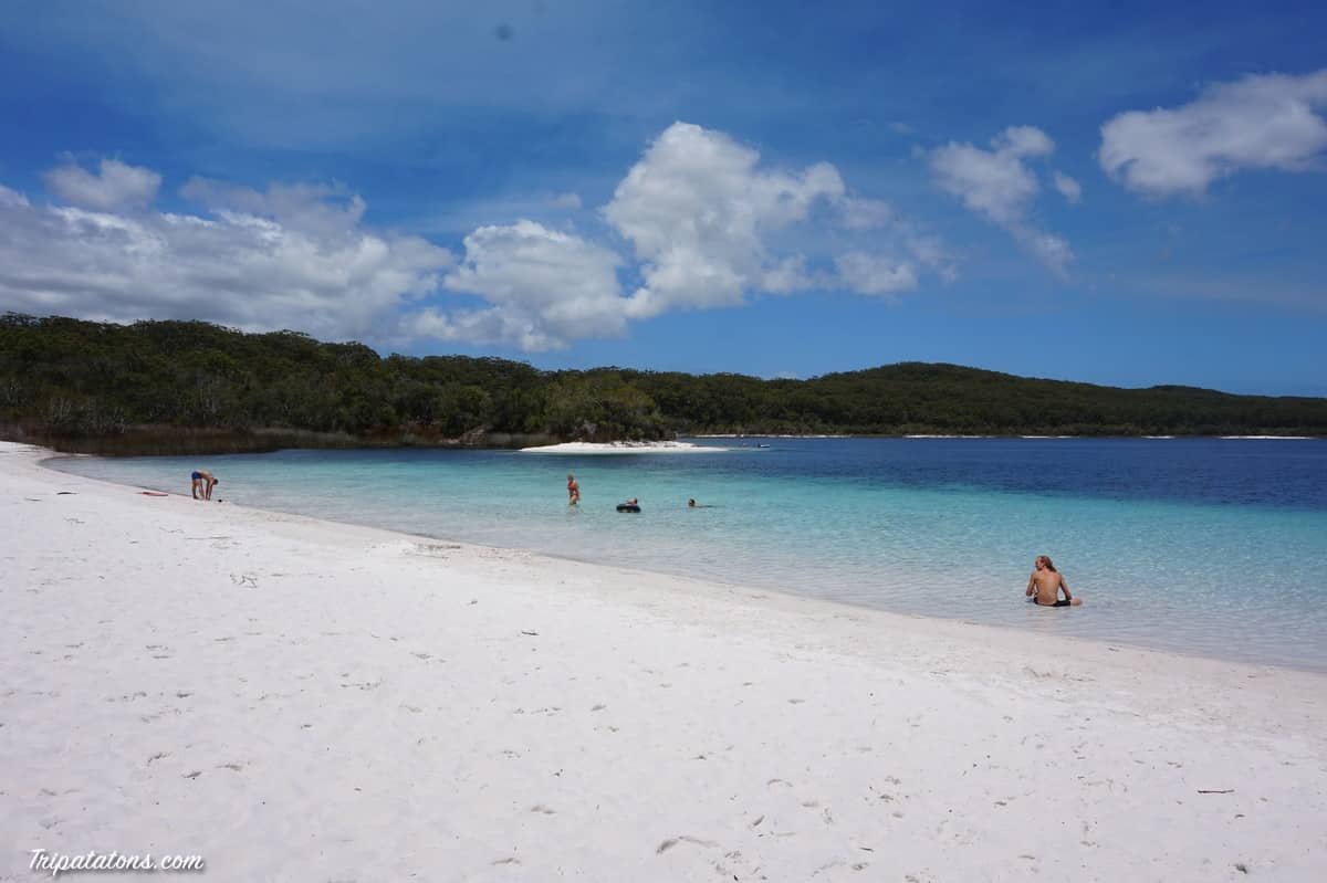 C’est la plus grande île de sable du monde (120km de long pour 15 de large). Sur l’île, forêts humides, lacs, marécages, dunes de sable, plaisent aux dingos. Nous n’en verrons qu’un bébé, mais ça reste un dingo tout de même !