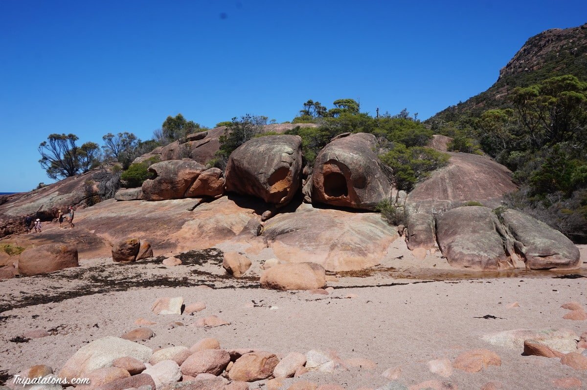 Le lendemain, nous commençons la première étape de cette journée placée sous le signe de la randonnée par Wineglass Bay. Après Cole Bay Lookout, puis Wineglass Bay Lookout, nous descendons jusqu’à Wineglass Beach.