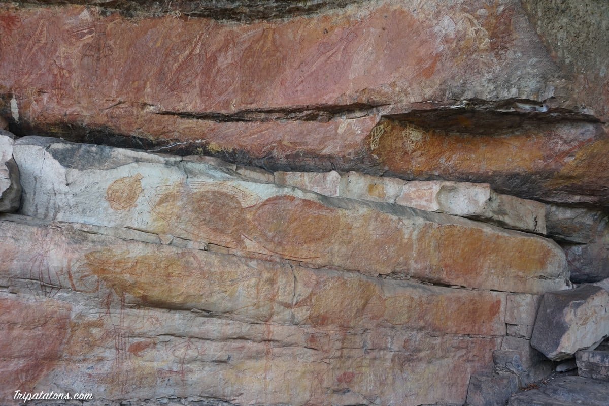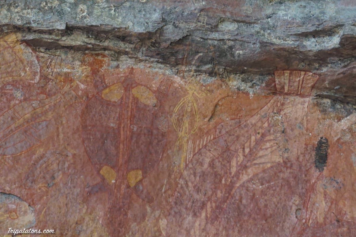 Nous attaquons d’entrée de jeu par Nourlangie, l’autre point phare du parc. C’est ici que se trouve une partie de l’art rupestre. Et nous ne serons pas déçus ! Les peintures que nous voyons ici ont entre 150 ans et plus de 20 000 ans.