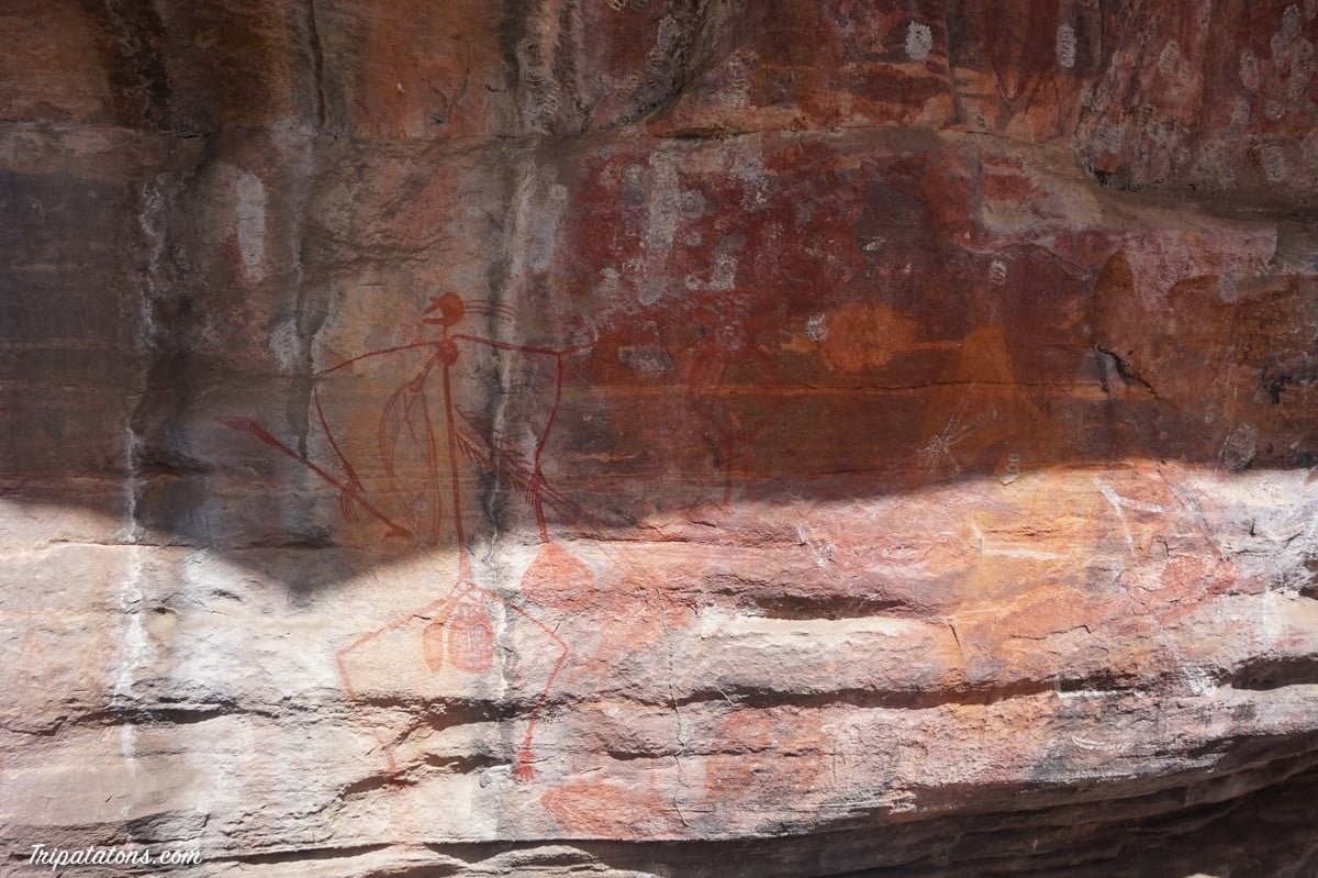 Nous voici donc à Kakadu National Park, le plus grand parc national de l’Australie (19757 km²). Grâce à ses richesses naturelles et culturelles, il est classé au patrimoine mondial de l’UNESCO. Sa frontière naturelle est la terre d’Arnhem, une ligne de 500km de rochers de 30 à 200m de haut. Kakadu, vide de toute habitation, appartient aux Aborigènes. Le parc abrite de nombreux sites d’art rupestre, marquant les milliers d’années d’occupation des peuples Aborigènes. D’ailleurs, le parc étant constitué à 80% de savanes et forêts, les Aborigènes utilisent toujours les plus de
