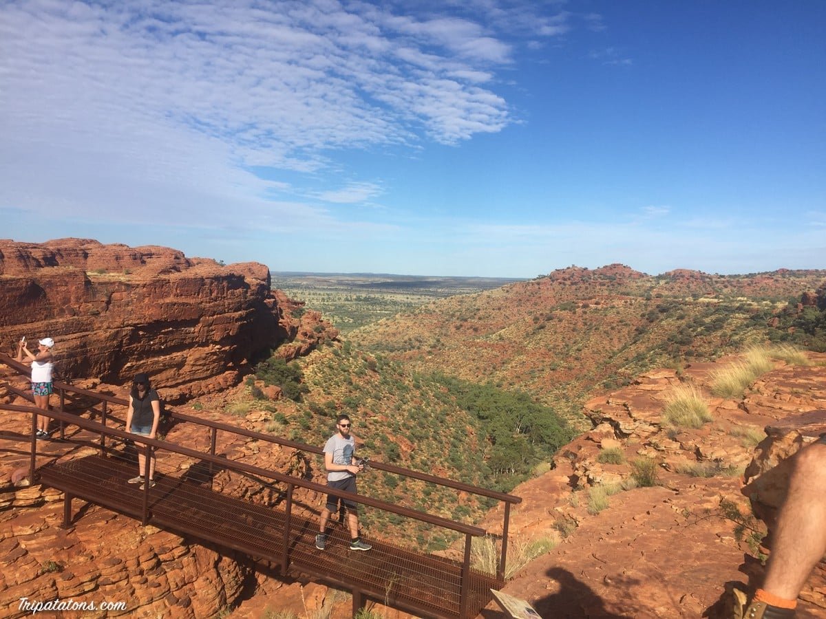 Kings Canyon se trouve au milieu du désert. Les falaises se sont formées avec le temps par les changements de température sur les dunes de sable et l’érosion. Cela m’a rappelé un mélange de Kalbarri, Karijini et Purnulu (rien que ça !)