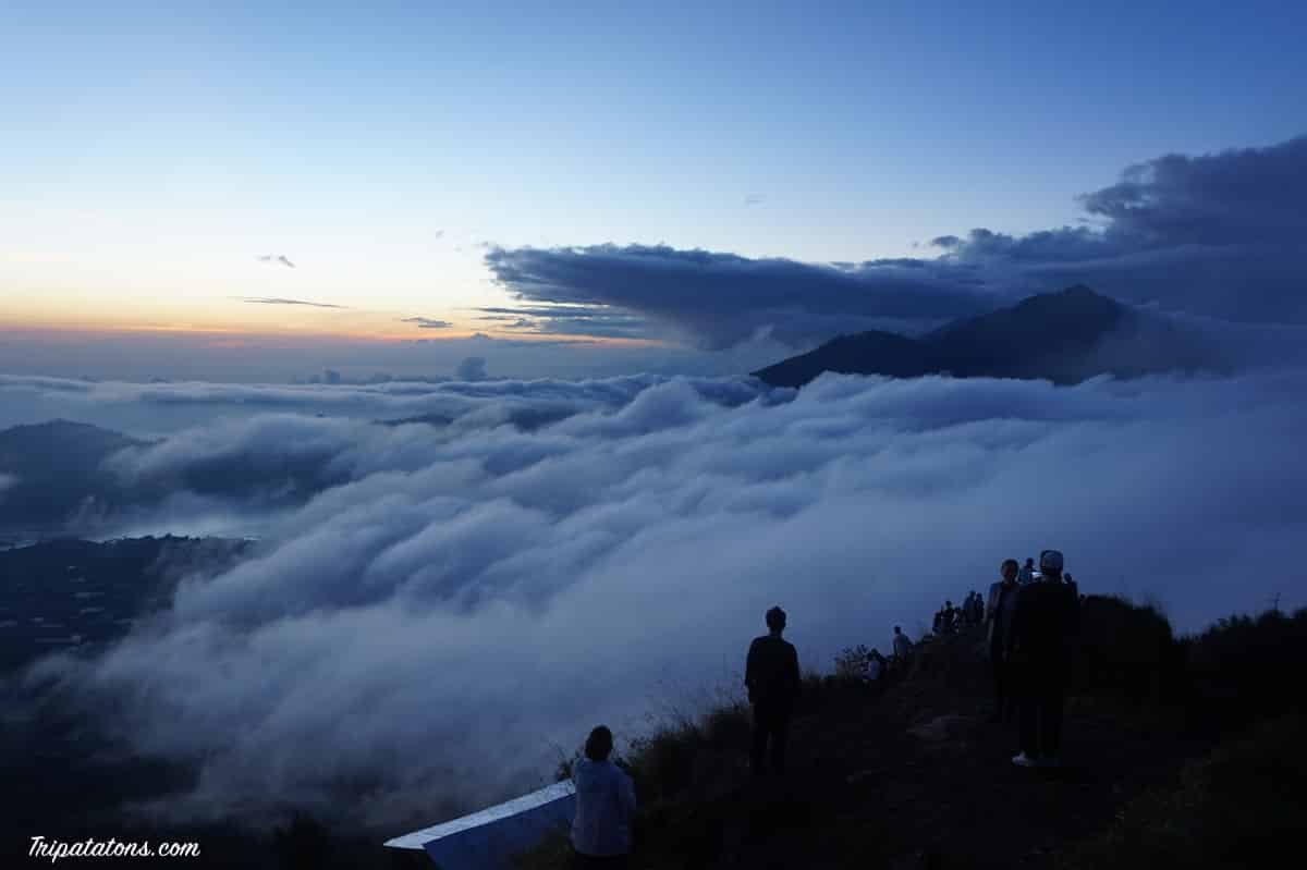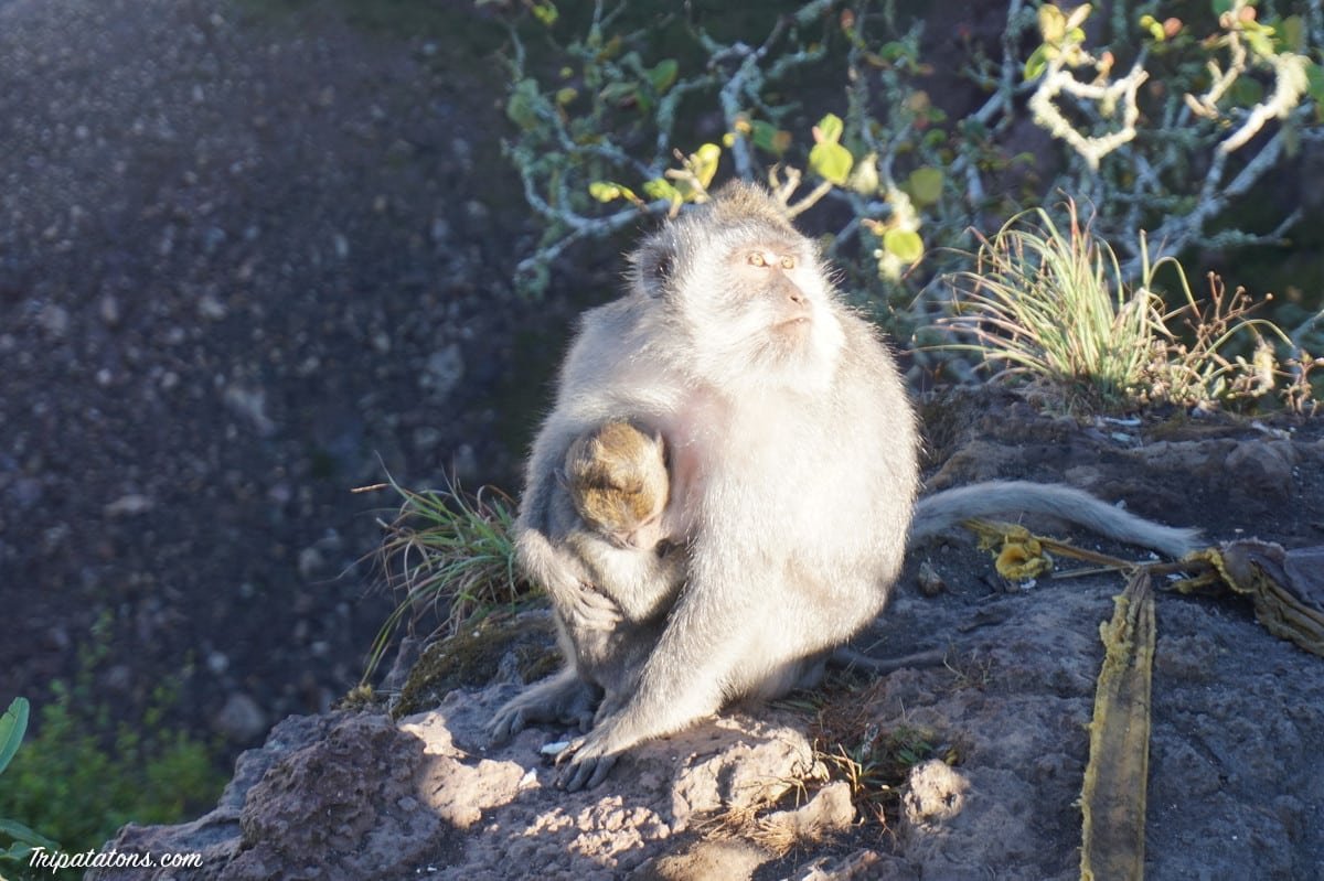 Nous avons réservé notre petit trek via le site francophone govoyagin, qui vous prépare un programme complet : taxi aller-retour hôtel-mont, petit-déjeuner cuit au volcan, bouteilles d’eau et snack, lampes torches, guide obligatoire (à cause d’une histoire de mafia des guides…), tour de la crête, bref, nous sommes emballés. Au départ de Kintamani, le tarif était moins élevé, c’est pour ça que nous nous étions rapprochés au maximum : 430 000 roupies/tête. Ayant pu discuter avec plusieurs personnes, le tarif est encore très variable : de 250 000 à 900 000 pour le même service, généralement plus au dessus de 400 000. Nous sommes dans la moyenne ! L’hôtel propose le service pour 550 000 ou 650 000 roupies.