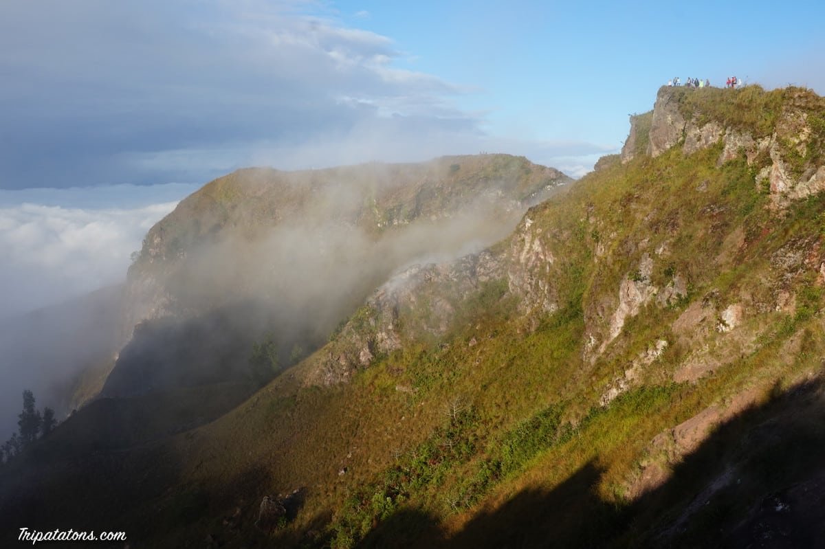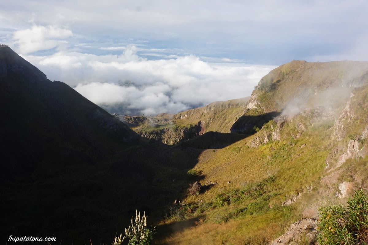 Notre guide nous prépare un breakfast à base de pain de mie grillé, oeufs durs et fruits. Il fait super froid… On nous propose des boissons chaudes (payantes) qui sont les bienvenues ! Après avoir englouti tout ça, bon nombre de touristes sont déjà redescendus et le ciel se dégage. Il est bien trop tard pour le sunrise mais la vue est superbe.