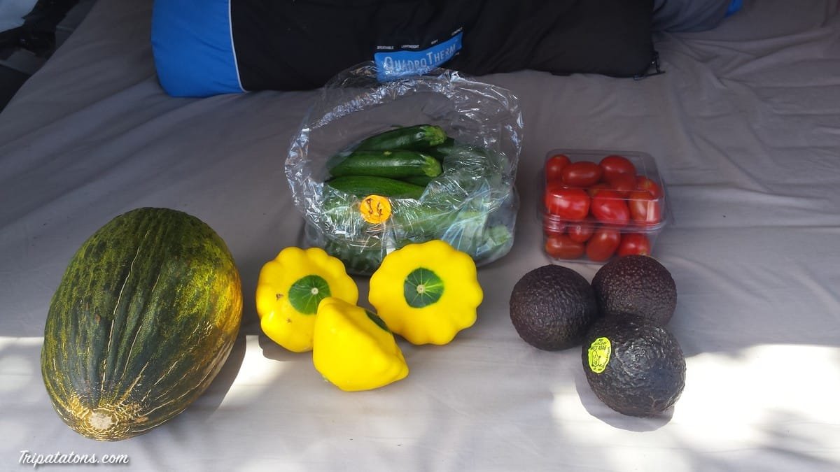 - Pattypan squash et mi-melon mi-pastèque sur la gauche