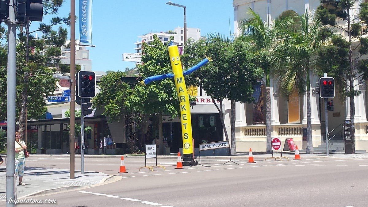 Après ces 2 soirées franco-germano-hollandaises, c’est avec un ami australien que je passe la suivante ! Le Strand Night Markets de Townsville se tient chaque 1er vendredi soir du mois de mai à décembre, de 17h à 21h30. Il attire apparemment les foules, mais pas de chance, c’est la pluie qui nous accueille ! Pas de photo du coup, tous les artisans remballaient… Ca ne nous a pas empêché d’aller admirer Townsville by night, du haut de Castle Hill. Bien que je ne sois pas fan de ces paysages illuminés par l’Homme, il faut avouer que c’était quand même chouette…