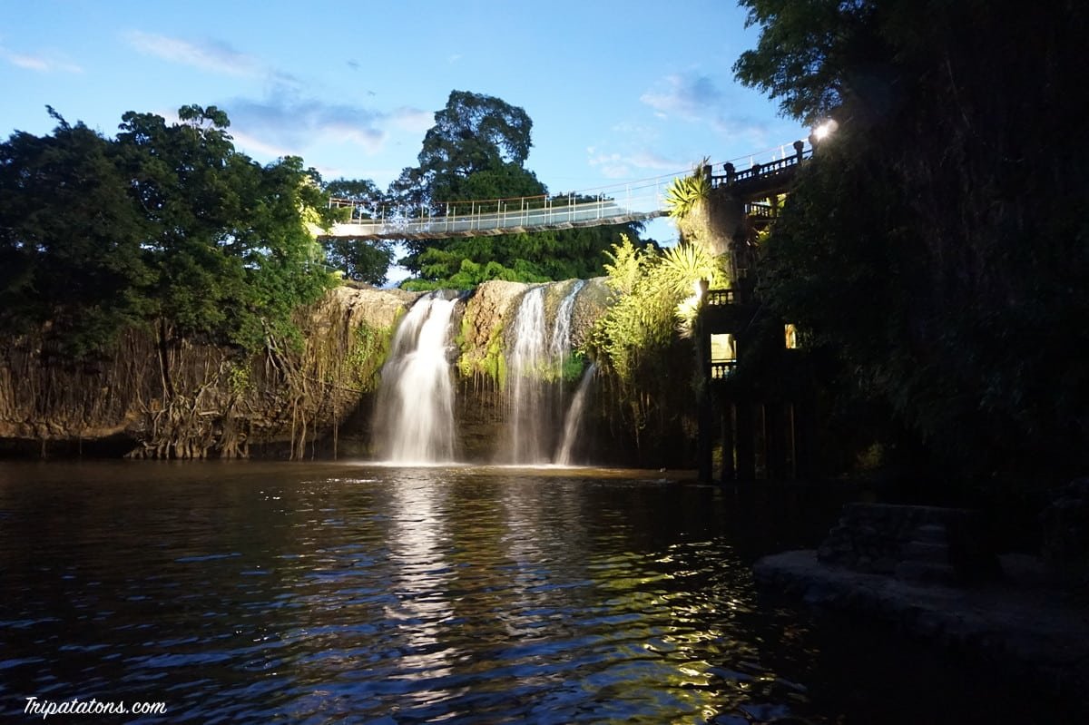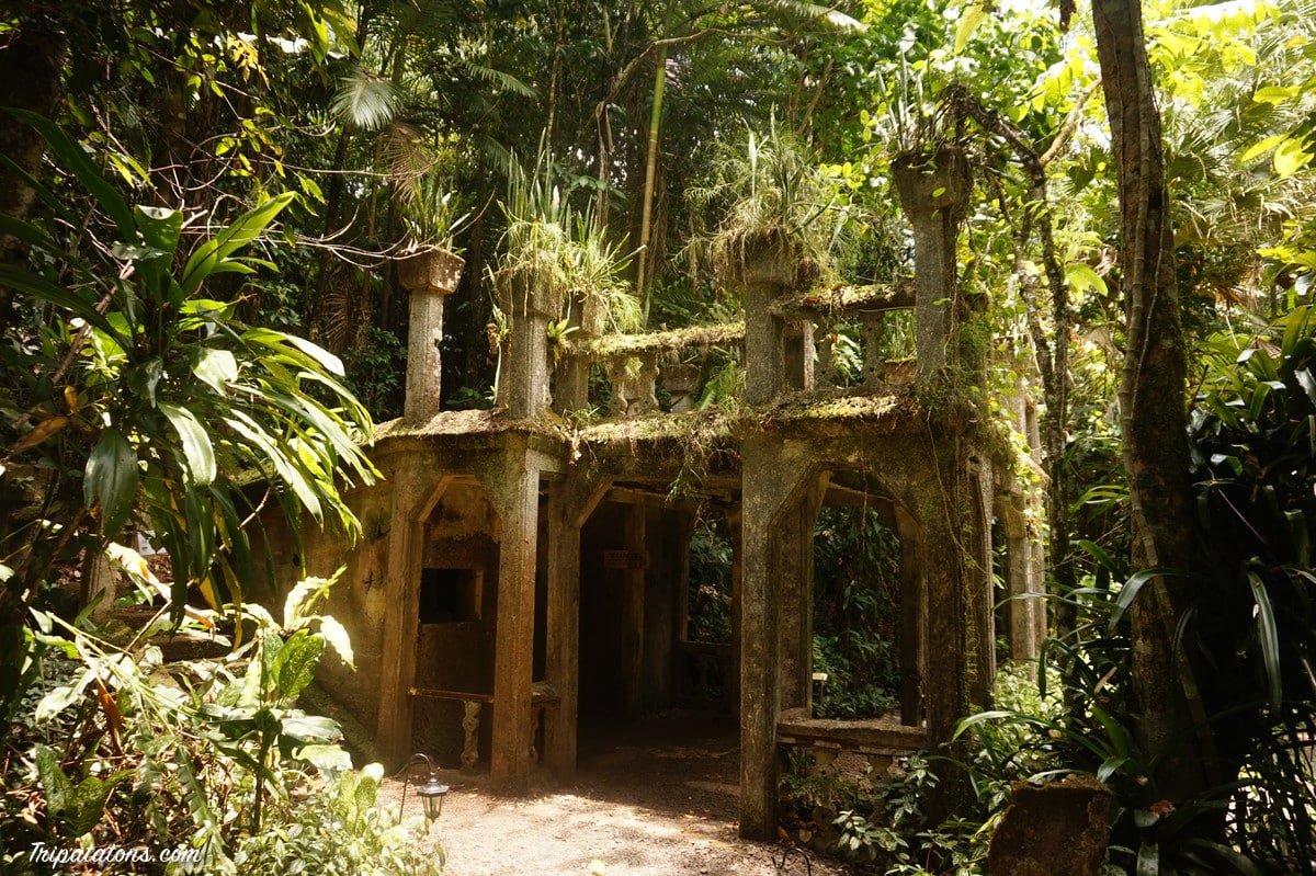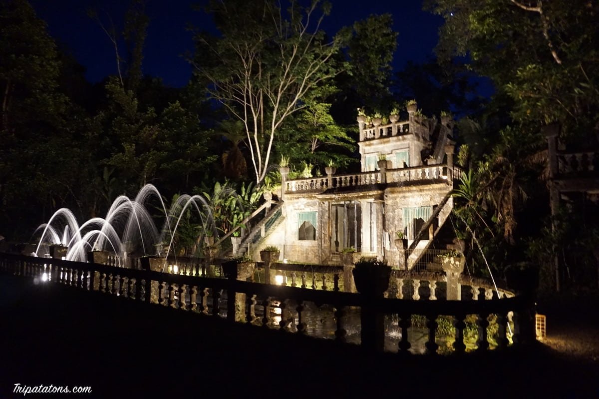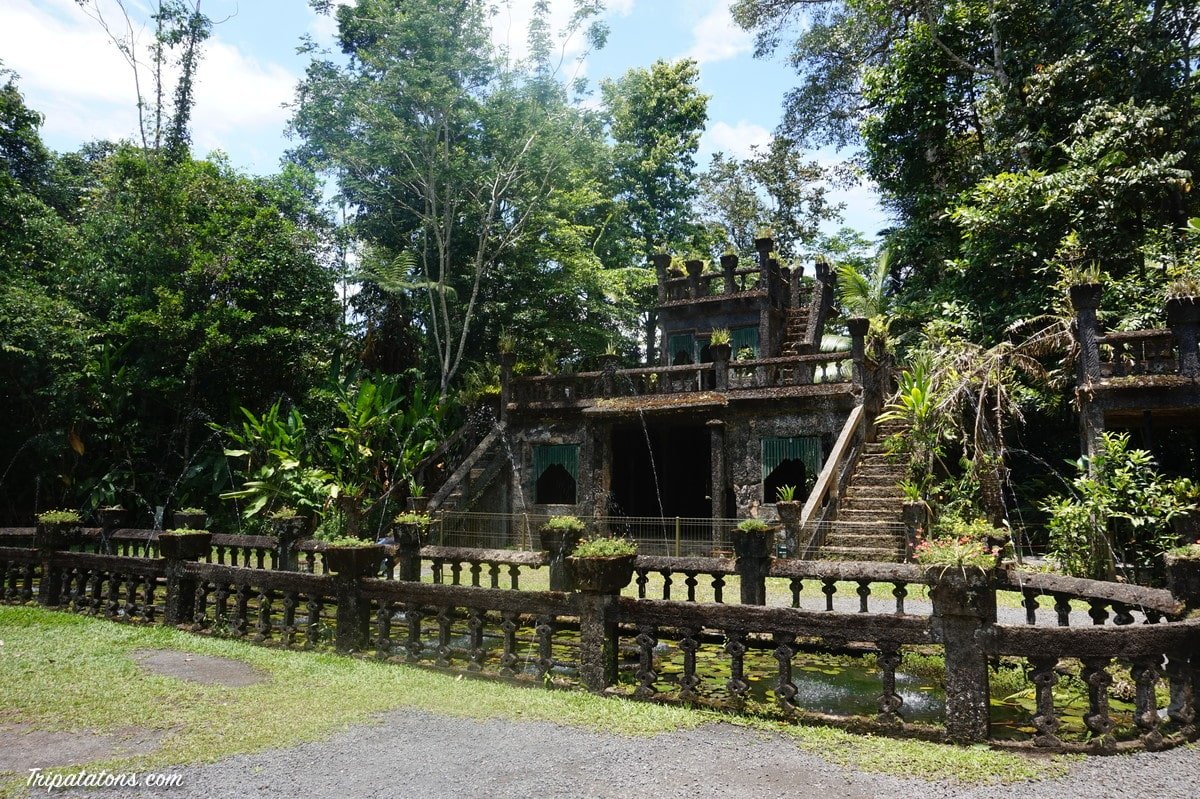 Paronella Park est un lieu qui abrite les ruines d’un château espagnol des années 30 et tout ce qu’il y avait avec (théâtre, cours de tennis, espace de pique-nique…). Cet Espagnol, José Paronella, avait un rêve : construire un bâtiment magnifique dans un lieu magique, pour y vivre heureux avec sa femme Matilda. Il décida de rejoindre l’Australie pour y faire de l’argent dans les cannes à sucre. Il passa plus de 10 ans à travailler dur à l’autre bout de la terre et trouva son coin de paradis, au milieu de cette forêt. De retour en Espagne, Matilda, sans même une lettre pendant une grosse décennie, était déjà mariée. Il épousa donc sa petite sœur Magarita. Avec les matériaux du coin, essentiellement de la pierre, du sable et des bouts de rails servant au transport de la canne à sucre par le train, il construisit sa propriété : un château inspiré des contes de fées que sa grand-mère lui racontait quand il était petit. Il y vécut avec sa femme et ses 2 enfants. C’est le premier bâtiment du coin a avoir eu de l’électricité, grâce au système de turbine relié aux chutes d’eau. C’est également parce que c’est un lieu qui offrait tout le confort recherché, que les voyageurs sur la route entre Cairns et Brisbane s’y arrêtaient. Il était possible de se baigner, de visiter des aquariums…