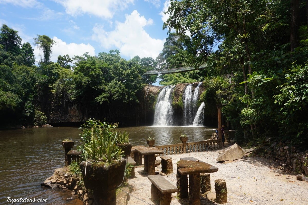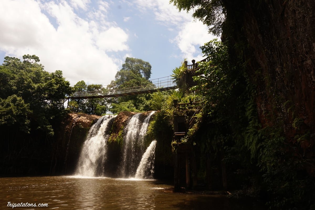 Et puis j’arrive à Mena Creek Falls. Vous pouvez admirer 2 belles cascades du haut d’un ponton en bois. En fait, c’est l’extérieur du parc de Paronella.