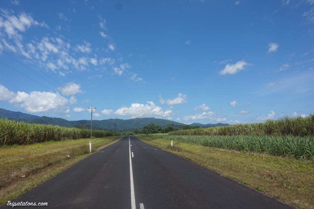 Je continue mon chemin pour rejoindre Paronella Park. Mes collègues m’en ont beaucoup parlé alors je ne peux pas faire l’impasse. La route pour y aller est super belle : monts, champs de canne à sucre, bananeraies, plaines verdoyantes…