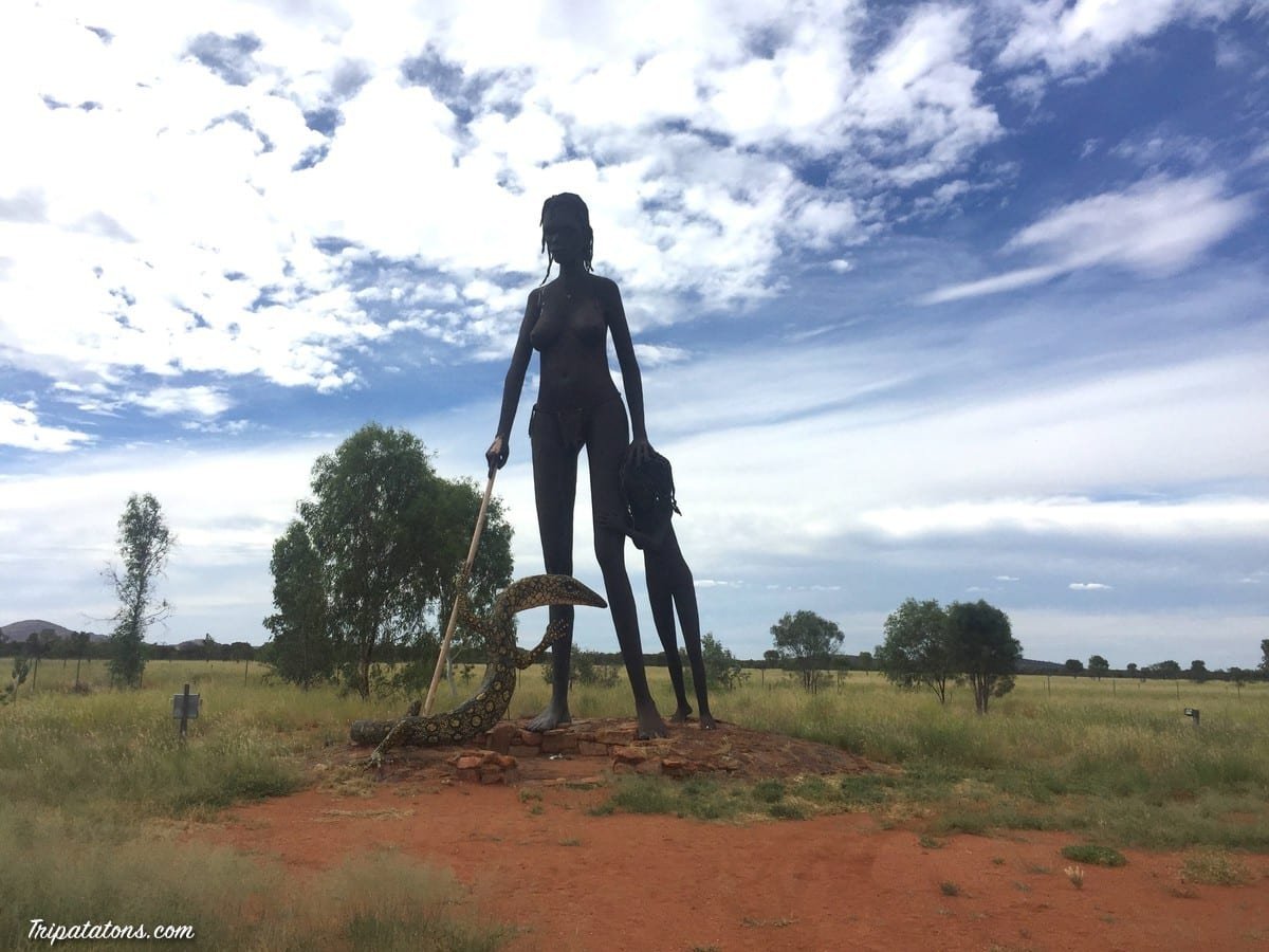 Ils décident de tenter le tout pour le tout et de continuer la route. Je propose à Kinga (l’allemande avec eux) de monter avec moi car elle n’a pas du tout confiance en la voiture. Nous nous arrêtons sur la station d’Aileron ou nous découvrons des gigantesques statues puis nous repartons.
