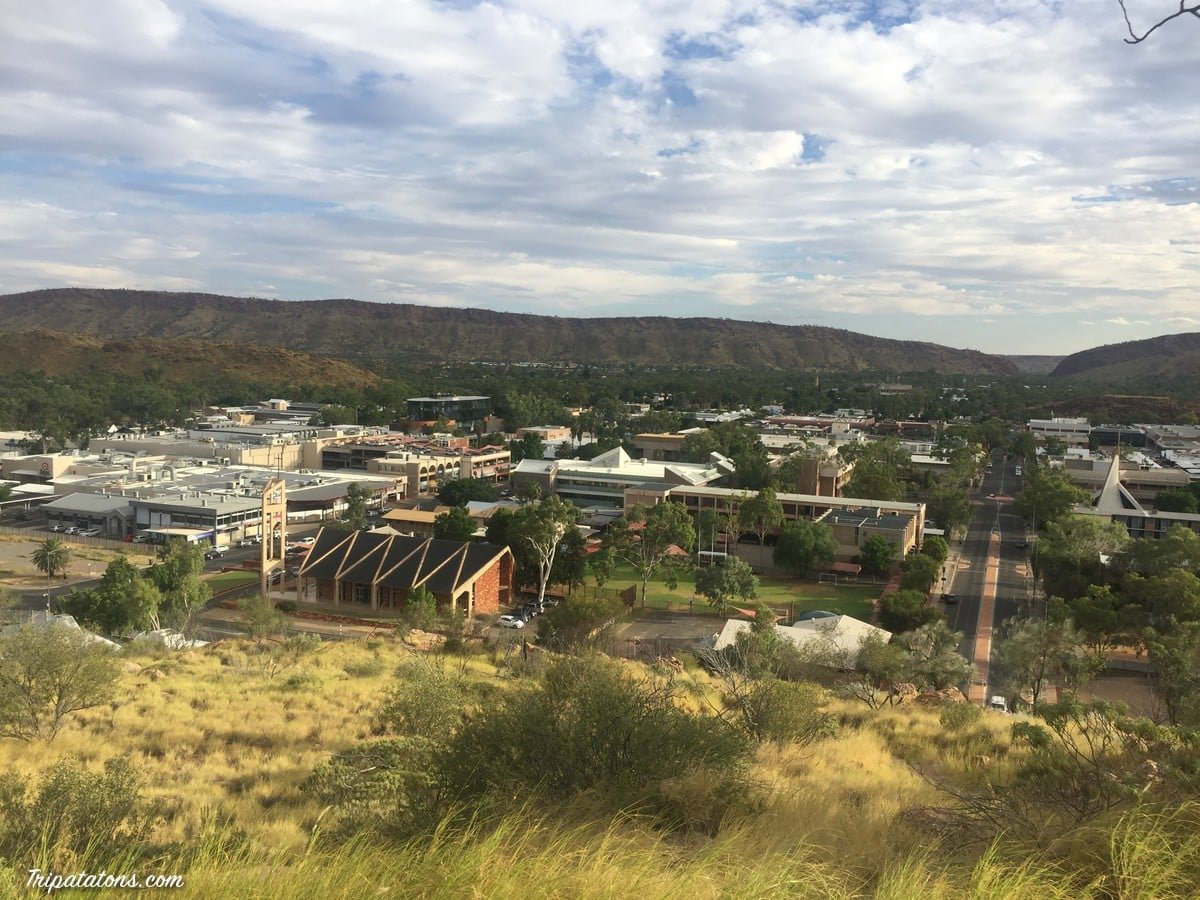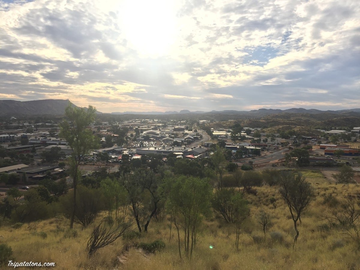 1h30 plus tard nous arrivons à Alice Springs et nous arrêtons sur Anzac Hill. Il s’agit d’une petit colline au milieu de la ville qui permet d’avoir un point de vue plutôt sympa.