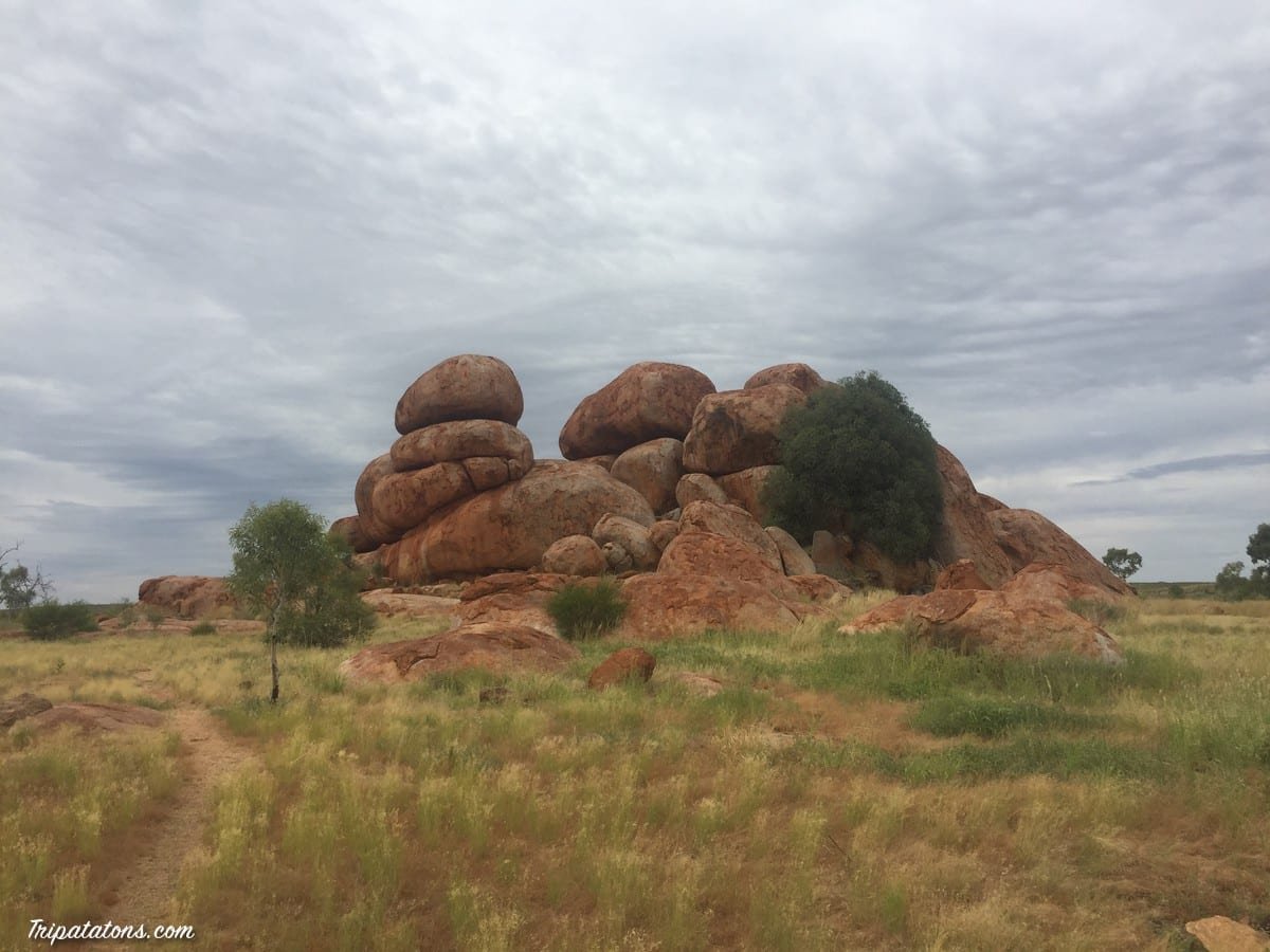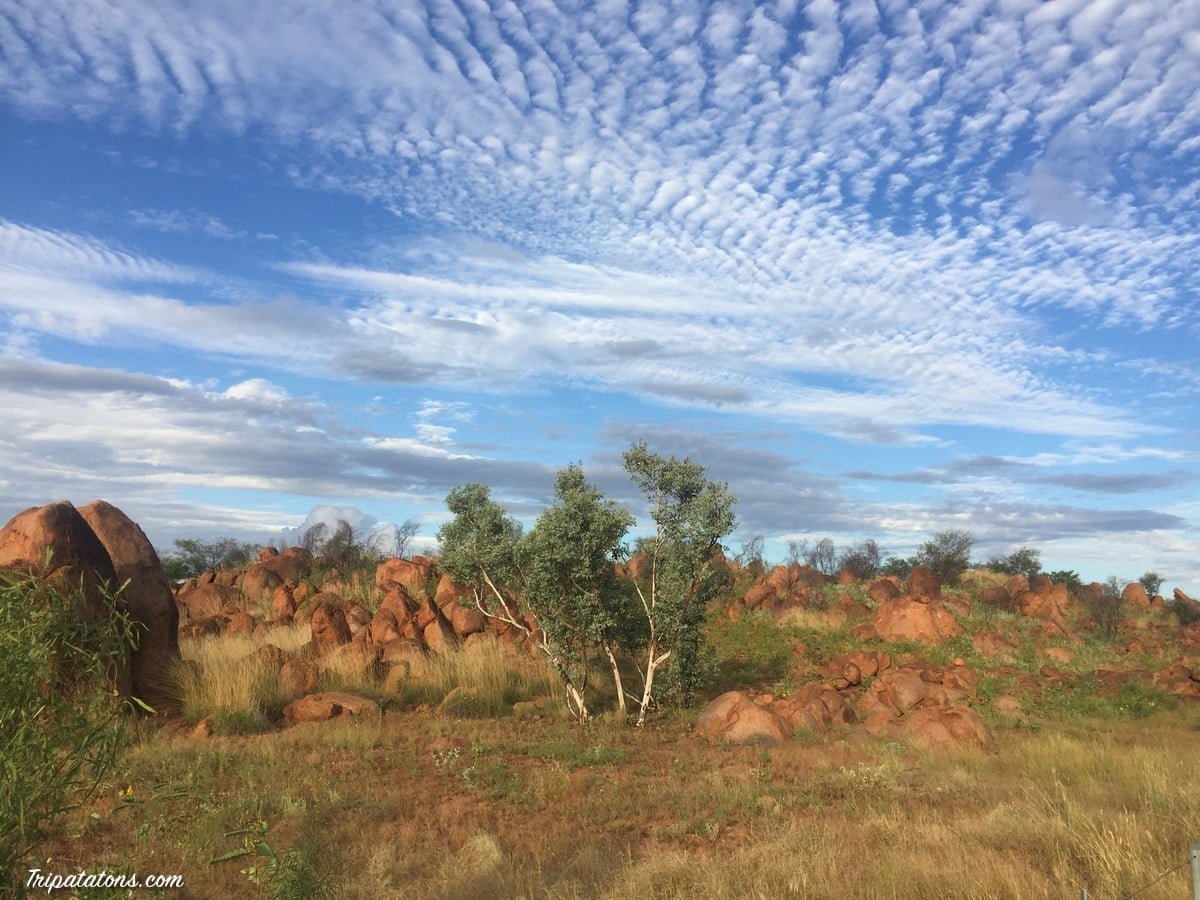Nous nous arrêtons au Devil Marbles afin d’admirer ses gigantesques rochers empilés là depuis des décennies.
