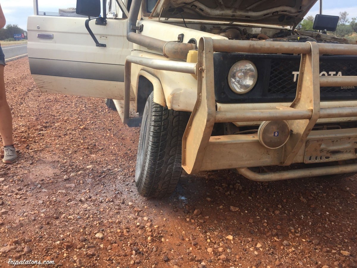 Ils décident d’abandonner leur voiture au milieu du désert et de monter avec moi jusqu’à Alice Springs. Je me retrouve donc à bord avec Benjamin, Igor et Kinga, ainsi que toutes leurs valises et tout ce que l’on a pu récupéré dans la voiture.
