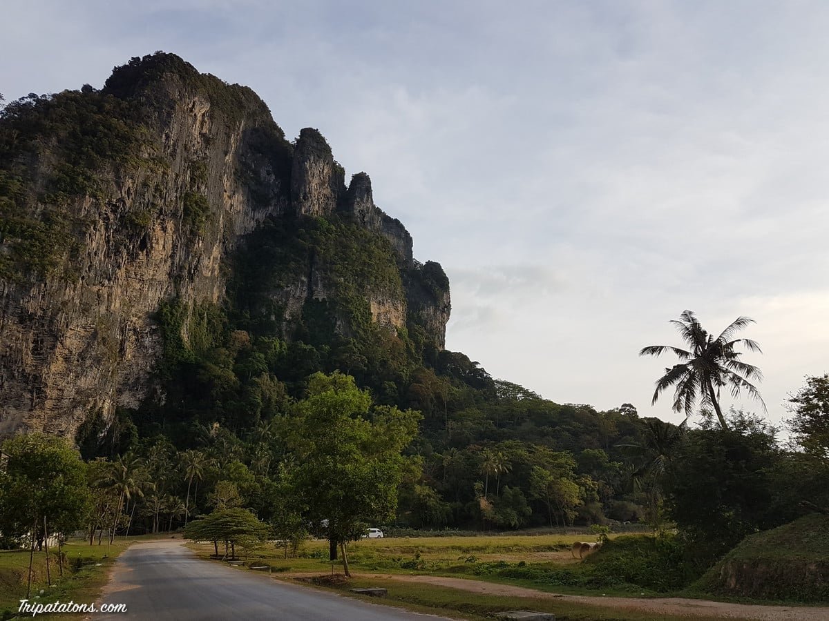 Nous voulions visiter Railey beach mais nous arrivons trop tard. Cette place n’est accessible que par bateau et le dernier départ est à 17h. Nous nous installons donc dans l’un des bars sur la plage d’Aonang pour boire l’apéritif, diner et regarder le sunset. Il y a pire comme vie !