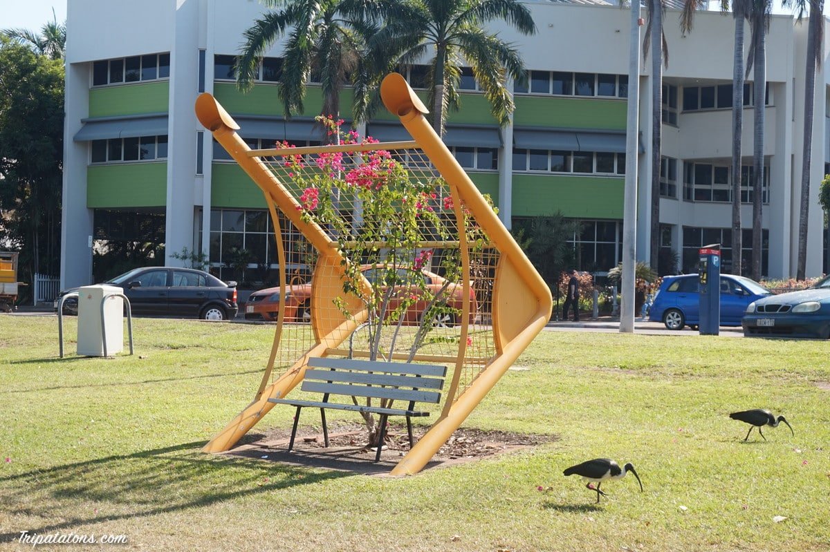 En effet, Darwin a du se relever après les 64 bombardements japonais qu’elle a subi pendant la seconde guerre mondiale, tuant 243 personnes. Puis, 25 ans plus tard, le 24 décembre 1974, elle a vécu un réveillon de Noël cauchemardesque après le passage du cyclone Tracy. 71 personnes ont perdu la vie. Il a fallu 3 ans pour tout reconstruire et faire de nouveau émerger une ville. Aujourd’hui, Darwin est la capitale de la région NT. Elle est peuplée par une population originaire de plus de 50 pays. C’est LA ville cosmopolite Australienne. Darwin est bordée par la mer de Timor et est plus proche de l’Indonésie que des villes du sud de l’Australie. Une partie des Aborigènes est restée vivre ici. Aujourd’hui, une part de leurs terres leur a été restituée, ils détiennent donc la moitié du Northern Territory.