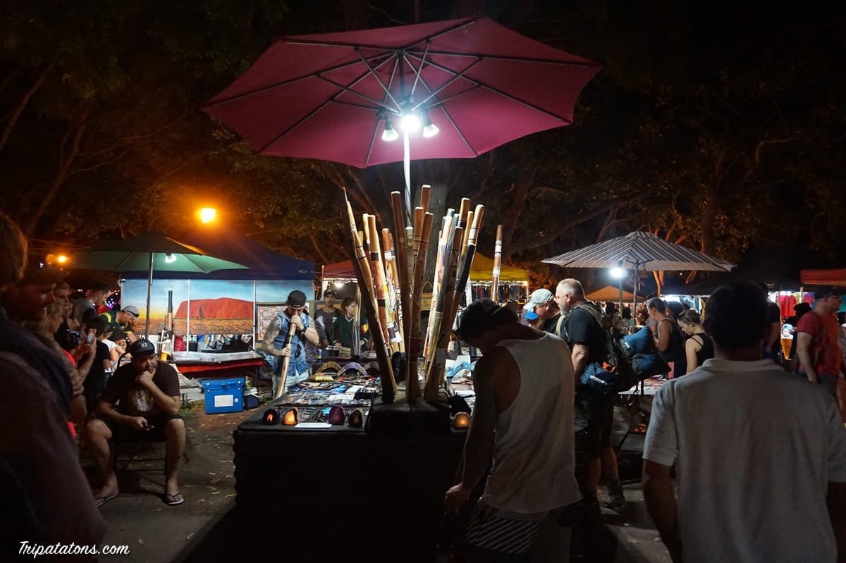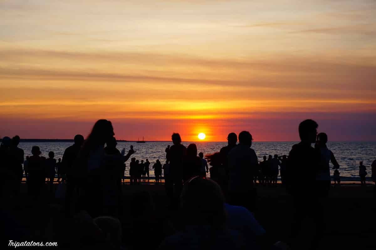 Et puis il est enfin temps d’aller errer au célèbre Mindil Beach Sunset Market, le marché nocturne bondé de Darwin, qui accueille toutes catégories de stands et permet de profiter d’un magnifique coucher de soleil (les derniers du bon côté de l’Australie ! ). La foule nous effraie un peu, des centaines d’âmes d’un coup après la tranquillité de la côte ouest, ça surprend !