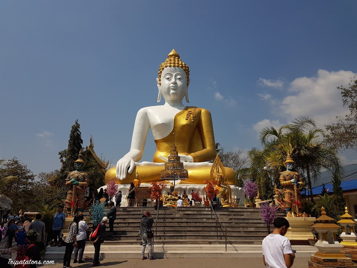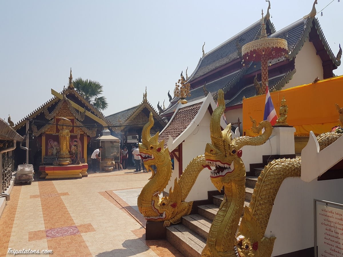 Nous décidons d’aller visiter le temple Wat Phra That Doi Kham. Celui-ci surplombe la ville de Chiang Mai. Il est possible d’emprunter les 300 marches afin de rejoindre le sommer. Nous avons été un peu plus paresseux et avons pris la route pour monter directement en scooter.