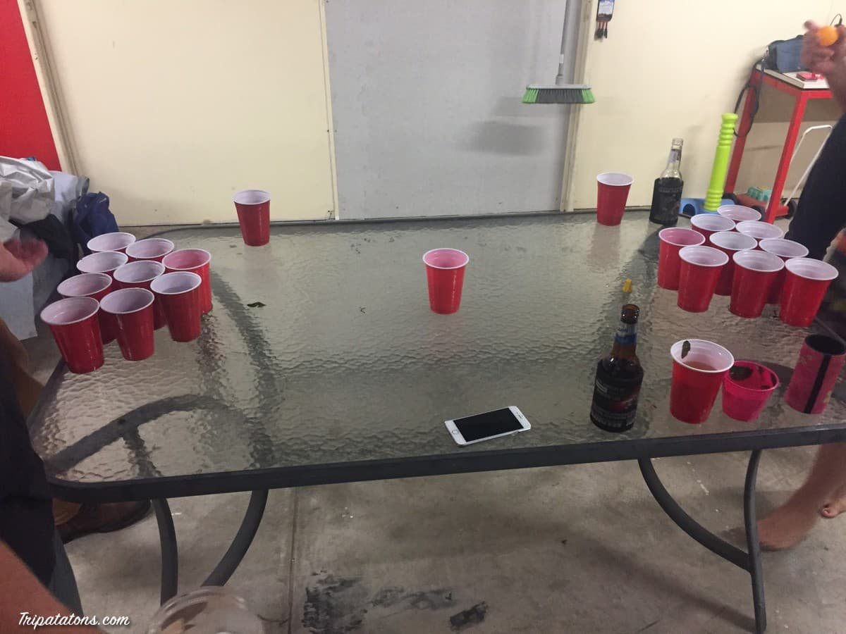 La soirée commence tranquillement dans la piscine avec les mojitos puis termine dans le garage avec la musique à fond, une partie de beer pong entourée par des gens qui dansent et la harley davidson qui ronronne en arrière plan.